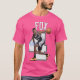 El color es muy bonito al natural, como la foto. El tejido es suave y de buena calidad. Sin defectos en el tintado, ni hilos sueltos o descosidos. Bien la impresión. Los bordes de las letras y el dibujo son nítidos, y el color contrasta muy bien con el de la camiseta.