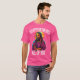 El color es muy bonito al natural, como la foto. El tejido es suave y de buena calidad. Sin defectos en el tintado, ni hilos sueltos o descosidos. Bien la impresión. Los bordes de las letras y el dibujo son nítidos, y el color contrasta muy bien con el de la camiseta.
