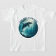 Un delfín bajo el agua con rayos de luz solar filtrándose a través del agua. Las palabras 'bucear profundo, vivir libre' están escritas encima de la imagen. Una maravillosa camiseta con un mensaje inspirador. Contiene contenido generativo.