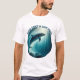 Un delfín bajo el agua con rayos de luz solar filtrándose a través del agua. Las palabras 'bucear profundo, vivir libre' están escritas encima de la imagen. Una maravillosa camiseta con un mensaje inspirador. Contiene contenido generativo.