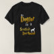 El color es muy bonito al natural, como la foto. El tejido es suave y de buena calidad. Sin defectos en el tintado, ni hilos sueltos o descosidos. Bien la impresión. Los bordes de las letras y el dibujo son nítidos, y el color contrasta muy bien con el de la camiseta.