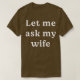 Déjenme preguntarle a mi esposa. Funny, Family, Sports, Music, Education, Animals, Jobs, Names, Graphic, Tees Shirt, Funny Sayings, Vintage, Holidays, Gifts, fiesta, souvenir, orgullo, vacaciones, ropa de vestir regalo para el Día del Padre, Navidades, cumpleaños, Día de la Madre, Aniversario, Graduación, Halloween, 4 de julio, jubilaciones, Día de San Patricio, Día de Acción de Gracias.