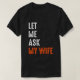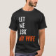 Un diseño gracioso para los esposos con un dicho sarcástico "Déjame preguntarle a mi esposa" perfecto para los que saben quién toma realmente las decisiones en la relación.