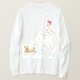 Una camiseta blanca largo-envuelta con una imagen a mano, pintada a mano de Judy Adamson de un hombre mayor que activa con un perro. El texto en su top corriente lee, "telegrafiado de nuevo no retirado". Un regalo ideal para un active retiró al hombre. La imagen parece buena en otros estilos de la camiseta donde está blanco el color de fondo.
