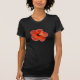 La camiseta de las mujeres negras con el hibisco rojo/anaranjado florece. ¡Haga clic en la camisa para modificar y para elegir su propio tamaño para requisitos particulares!