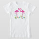 Ilustraciones gráficas originales de las participaciones rosadas de la yarda del flamenco con las flores coloridas y caprichosas. Camiseta bonita del tiempo de verano.