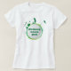 Usted puede cambiar el texto en esta camisa que tenga una pelota de golf central blanca grande rodeada por la hierba y otros artículos relacionados golfing, tales como una silueta de un golfista de sexo femenino, de una bolsa de golf con los clubs del oro, de un carro de golf, y de banderas. Perfeccione para las mujeres cariñosas del golf.