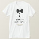 Estas divertidas camisetas están diseñadas como favores o regalos para tu mejor hombre. La camiseta es blanca y tiene una imagen de una corbata de arco negro y tres botones. El texto dice Mejor hombre, y tiene un lugar para introducir su nombre así como el nombre de la pareja boda y la fecha boda. Excelente adición a una bolsa de boda.
