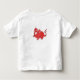 Un blanco, una camiseta del niño shortsleeved con una parte posterior roja linda del dragón y un frente, de un ilustracion pintado a mano de Judy Adamson.
