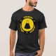Químico - diseño del negro y del amarillo de la precaución con las letras del estilo y el frasco de Erlenmeyer colegiales.
