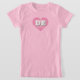 Esta camiseta tiene un corazón rosado con un centro lavado de blanco que contiene las letras negrita, blanca y funda superior DE, la abreviatura oficial de Delaware, el primer estado.
