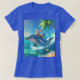 delfín a través de olas océano cristalinas. El delfín nada con gracia, sumergiéndose de arriba a abajo. El conejo se sostiene con sus diminutas patas, orejas ondeando en la brisa, ojos anchos con emoción.
