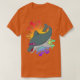 El color es muy bonito al natural, como la foto. El tejido es suave y de buena calidad. Sin defectos en el tintado, ni hilos sueltos o descosidos. Bien la impresión. Los bordes de las letras y el dibujo son nítidos, y el color contrasta muy bien con el de la camiseta.