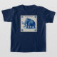 Un mamut humorístico, monótono, lana azul (mammathus primigenius) al estilo de una teja Delft. Personalizar agregando su propio texto.