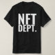 ¿Diseñas, vendes, recopilas o comercias con FN? Después bienvenido al DEPARTAMENTO de la NFT. Avanzar en el futuro de la moda con el Tee de la NFT, una declaración audaz que une la innovación digital y la cultura de la calle. Esta camisa es más que solamente ropa; es un emblema de la revolución de las NFT, diseñado para creadores, coleccionistas y entusiastas de la criptografía que quieren mostrar su pasión por los tokens no fungibles con estilo.