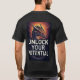 El color es muy bonito al natural, como la foto. El tejido es suave y de buena calidad. Sin defectos en el tintado, ni hilos sueltos o descosidos. Bien la impresión. Los bordes de las letras y el dibujo son nítidos, y el color contrasta muy bien con el de la camiseta.