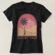 A silhouette of a palm tree stands tall amidst sand dunes with a blazing sun. The title can be customised.