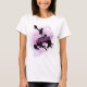 Camiseta divertida de despedida de soltera disco diseñada para la equipo de la novia. En hermosos colores gradientes desde lavanda hasta periwinkle y rosa con una bola de discoteca funky, silueta de vaquero domando un bronco, fuente retro glamorosa "Bride 'em Cowboy" (el equivalente country de 'ponle un anillo') y un fondo de luces de discoteca. Busca ID928 para ver otros productos de esta colección de moda.