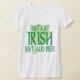 Las características del diseño de consumición del día de este St Patrick el subtítulo "irlandés inmediato apenas añaden la cerveza" en texto verde grande en un fondo verde claro del trébol.