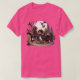 El color es muy bonito al natural, como la foto. El tejido es suave y de buena calidad. Sin defectos en el tintado, ni hilos sueltos o descosidos. Bien la impresión. Los bordes de las letras y el dibujo son nítidos, y el color contrasta muy bien con el de la camiseta.