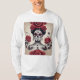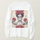Inspirado por el Día de los Muertos, este diseño celebra la vida y la muerte a través de la representación de una mujer con la cara pintada de cráneo de azúcar, adornada con llamativas rosas rojas. El minucioso detalle del maquillaje del cráneo de azúcar combinado con la suave elegancia de los rosas hace de esto una pieza visualmente impresionante. Perfecto para quien aprecie la tradición mexicana, la belleza gótica o el arte floral, este diseño es ideal para los diferentes productos, desde la ropa hasta la decoración casera.