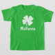 El diseño de las camisas para niños personalizados incluye un monograma de nombre (u otro texto) en blanco con un trébol de cuatro hojas de shamrock. ¡Perfecto para el Día de San Patricio!