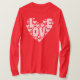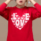 Un grupo gráfico día de San Valentín para mujeres con tipografía retro moderna con palabra de "amor". Texto blanco y camiseta roja.