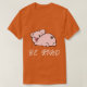 El color es muy bonito al natural, como la foto. El tejido es suave y de buena calidad. Sin defectos en el tintado, ni hilos sueltos o descosidos. Bien la impresión. Los bordes de las letras y el dibujo son nítidos, y el color contrasta muy bien con el de la camiseta.
