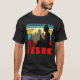 El color es muy bonito al natural, como la foto. El tejido es suave y de buena calidad. Sin defectos en el tintado, ni hilos sueltos o descosidos. Bien la impresión. Los bordes de las letras y el dibujo son nítidos, y el color contrasta muy bien con el de la camiseta.