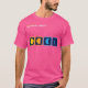 El color es muy bonito al natural, como la foto. El tejido es suave y de buena calidad. Sin defectos en el tintado, ni hilos sueltos o descosidos. Bien la impresión. Los bordes de las letras y el dibujo son nítidos, y el color contrasta muy bien con el de la camiseta.
