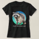 Una loca loca mujer de mapache agrega un mensaje de texto a la camiseta