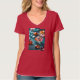 Camiseta con cuello en V de mujer, Negro, XL de adulto