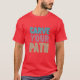 La imagen muestra un diseño de camisetas multicolor con el texto "Trazate tu camino" en una variedad de colores. El texto está organizado de una manera dinámica y llamativa que sugiere la idea de tallar el propio camino en la vida.