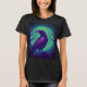 Camiseta Dibujo de un cuervo sobre fondo azul verde brillan