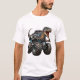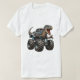 A prehistoric predator meets monster truck power! This design features a fierce Velociraptor dinosaur driving a massive monster truck with huge tires and an unstoppable attitude. Perfect for dinosaur lovers, monster truck fans, and anyone who enjoys fun creature truck designs. Great for kids, teens, and adults who love dinosaurs, off-road trucks, and bold artwork.