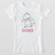 Dibujo artístico lindo y creativo de un dinosaurio, camiseta. Tema especial del blanco y negro, con tipografía editable rosa. Estilo único, diseño artístico esquemático. Arte digital original de Raphael Studio - 'Dino'.