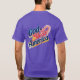 El color es muy bonito al natural, como la foto. El tejido es suave y de buena calidad. Sin defectos en el tintado, ni hilos sueltos o descosidos. Bien la impresión. Los bordes de las letras y el dibujo son nítidos, y el color contrasta muy bien con el de la camiseta.