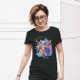 El color es muy bonito al natural, como la foto. El tejido es suave y de buena calidad. Sin defectos en el tintado, ni hilos sueltos o descosidos. Bien la impresión. Los bordes de las letras y el dibujo son nítidos, y el color contrasta muy bien con el de la camiseta.