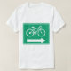 Las direcciones de ciclismo se indican con una bicicleta y una flecha hacia la derecha. Este diseño parece realmente efectivo en esta camiseta de Mens
