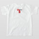La imagen muestra a un muchacho usando una camiseta blanca. La camiseta presenta un diseño gráfico con la palabra "Superboy" escrita en ella, acompañada de un único elemento gráfico rojo.