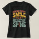 En este diseño quiropráctico se lee "Detrás de cada sonrisa hay una espina sana" en la tipografía retro con un acento facial sonriente. Perfecto para quiroprácticos, estudiantes quiroprácticos y defensores del bienestar que valoran la salud espinal, la curación holística y la atención inspiradora.