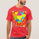 El color es muy bonito al natural, como la foto. El tejido es suave y de buena calidad. Sin defectos en el tintado, ni hilos sueltos o descosidos. Bien la impresión. Los bordes de las letras y el dibujo son nítidos, y el color contrasta muy bien con el de la camiseta.