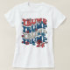 Camiseta de Diseño Trump 24. © Camisetas y Sudaderas en Zazzle. Esta camiseta tiene el nombre Trump repetido en un diseño rojo, blanco y azul con flores y el número 24 en la parte inferior.
