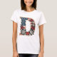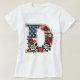 This initial 'D' is special for its rustic blend of patriotism and natural beauty. The bold letter form is filled with a cracked, vintage American flag pattern, symbolizing classic, weathered Americana. It is richly adorned with a layered display of vibrant red roses and delicate white daisies. This highly detailed graphic is ideal for personalized patriotic apparel, memorial designs, or vintage folk art prints.