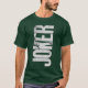 Show your appreciation for the Clown Prince of Crime with this bold JOKER graphic tee. The design features the word "JOKER" printed vertically in a distressed, grungy font, with a classic image of the villain subtly woven into the lettering. Set against a deep, dark green fabric, this shirt offers a subtle yet striking look that's perfect for comic book fans, movie enthusiasts, and anyone who loves classic DC Comics villains