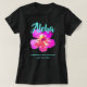 Esta colorida camisa hawaiana de Luau Aloha presenta una brillante flor de hibisco tropical y está personalizada con tu nombre y cumpleaños. ¡Una camisa divertida para celebrar tu día especial! Hace un gran favor de fiesta. Diseño © Rosalind Moore, Cherry Lane Designs.