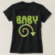 La flecha rayada divertida con cita del bebé es una manera peculiar de compartir sus noticias del embarazo en esta camiseta del corte de la maternidad.