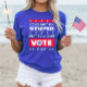 Esta graciosa camiseta muestra una cita política popular sobre políticos estúpidos que la gente consigue que se los echen de cualquier manera en su política. "No se puede arreglar lo estúpido, pero se puede votar" es un diseño moderno y patriótico de camisetas con una sorprendente combinación de rojo, blanco y azul acentuado con estrellas.