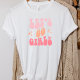 Camiseta blanca divertida para despedida de soltera para las amigas de la novia. Texto simple que dice Vamos chicas con estilo retro y estrellas. Varios colores para elegir