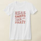 Camiseta Divertida y Linda para la Fiesta de Soltera para las amigas de la novia. Texto simple que dice Aquí viene la fiesta con letras rosadas y un anillo rosa.